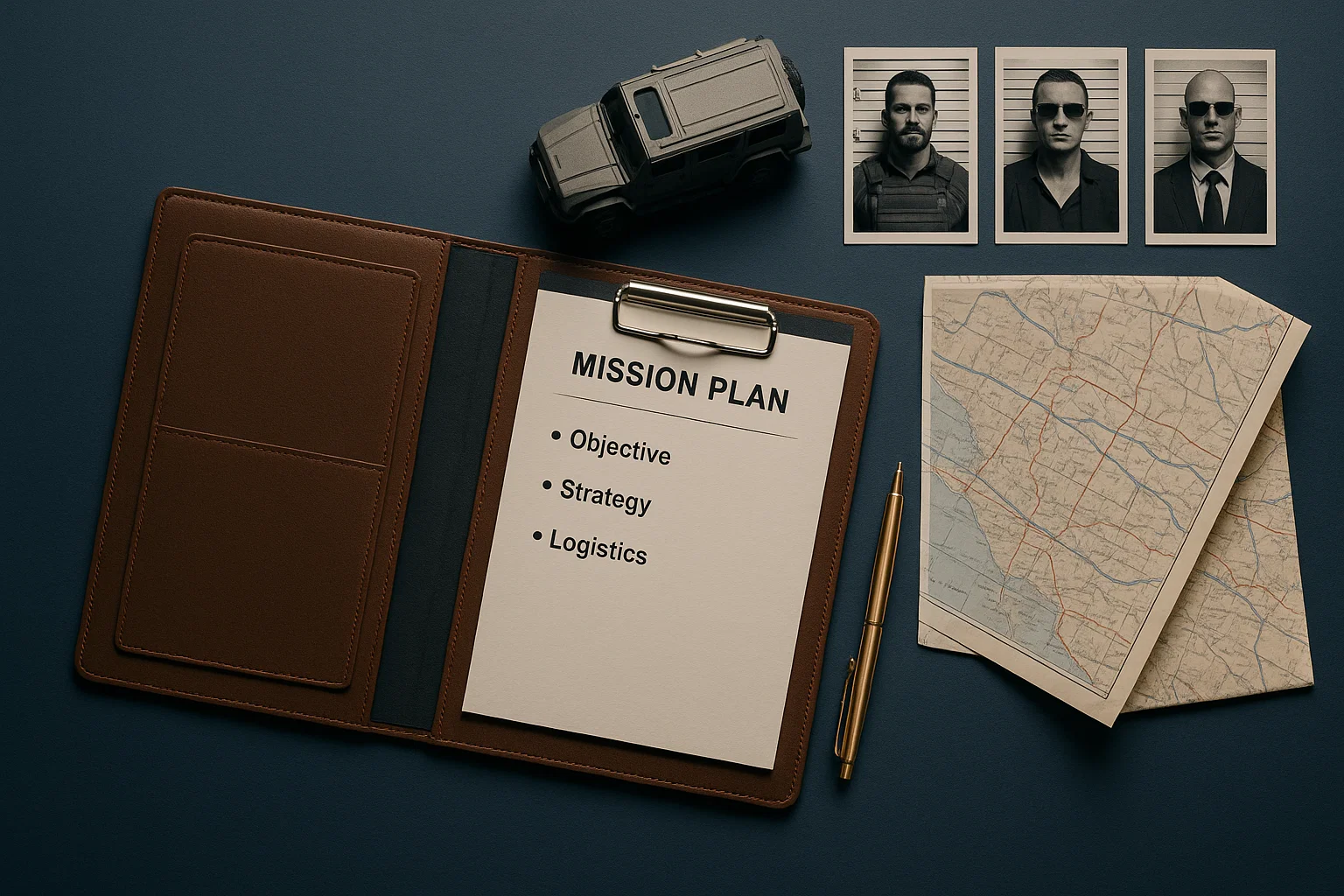 Hand-picked guards, vehicles, routes, and one private chat for live planning.